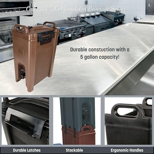 Carlisle FoodService Products 5-Gallon Insulated Beverage Dispenser, Cateraide, Food-Grade with Handles, Rugged PE Shell with PU Insulation for Coffee, Tea and Hot or Cold Drinks, Brown - Made in USA