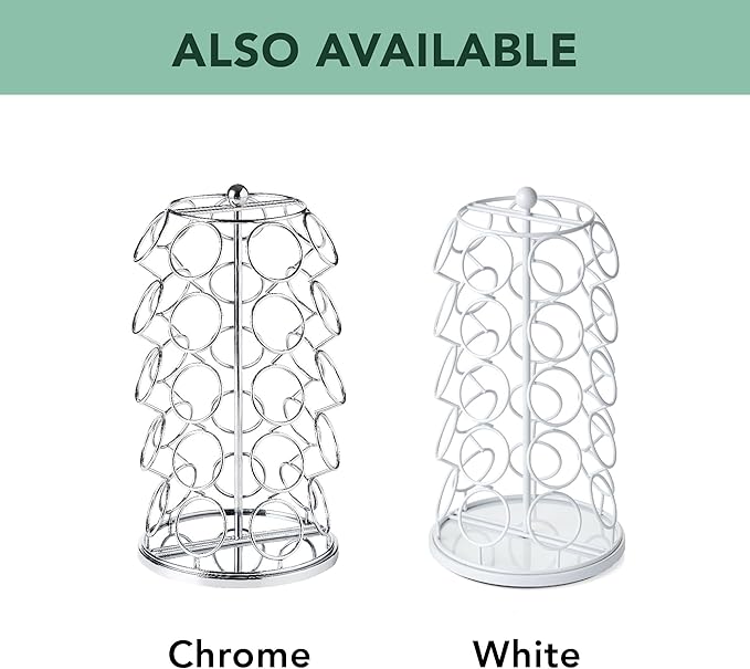 - COFFEE POD CAROUSEL: This Nifty carousel is compatible with K-Cups and stylishly showcases up to 35 of your favorite coffee pods. The lazy Susan base platform revolves and spins 360-degrees, which makes it simple and convenient to find and choose your preferred flavor.