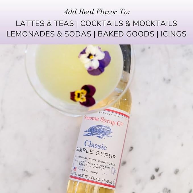 Sonoma Syrup Co. Classic Simple Syrup 12.7 fl oz | for Coffee, Cocktails, and Cooking | Hand Crafted in the USA