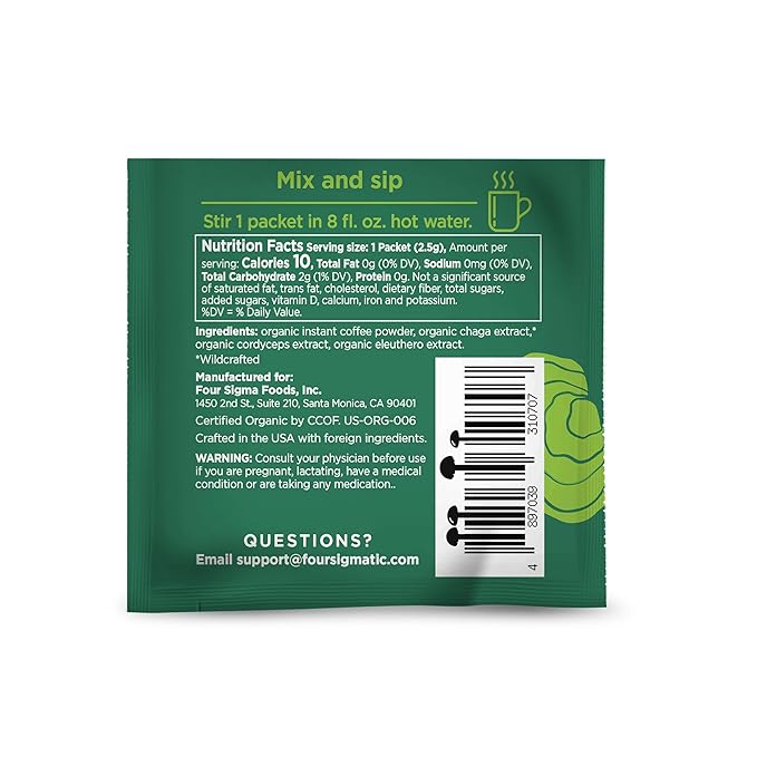 - SCIENTIFICALLY SPEAKING, THIS COFFEE IS PRETTY MUCH MAGIC — Functional mushrooms have been used around the world for centuries to improve productivity, immune support, and more. Unfortunately, the majority of the mushroom supplement market aren't mushrooms at all, but rather the mycelium (basically the root system). At Four Sigmatic, we bring only the best of nature to your daily routine, so we always use the mushrooms' fruiting bodies which contain 15x more active ingredients than the mycelium.