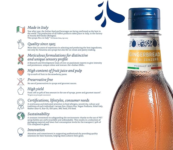 Fabbri Flavoring Syrup, Gingerbread, Made in Italy, 35 fl. oz