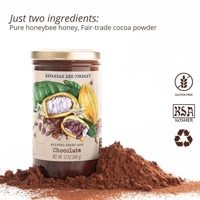 Savannah Bee Company Whipped Honey - All Natural Spreadable Honey (12 Ounce (Pack of 1), Chocolate)
