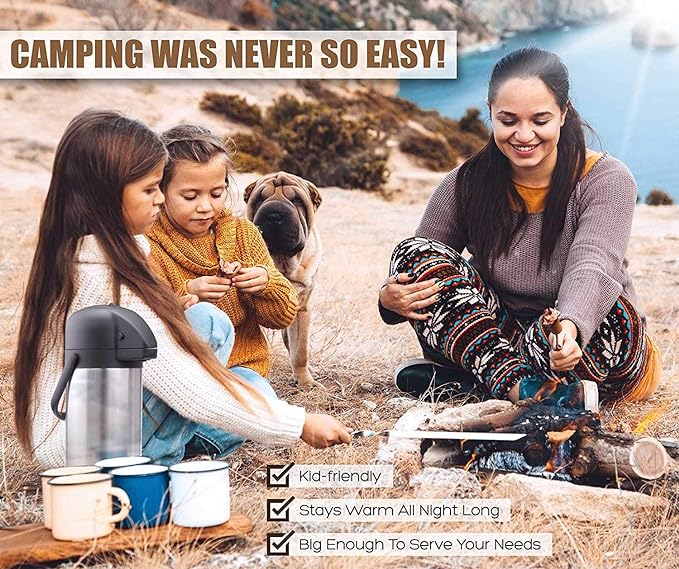 - DISPENSES EASILY AND QUICKLY: With the pump-action top design, this coffee dispenser with pump allows you to dispense your favorite beverage easily and safely with one press without lifting and tilting the entire airport, which greatly prevents the drinks from being overturned or leaked, and friendly to the elder and children.