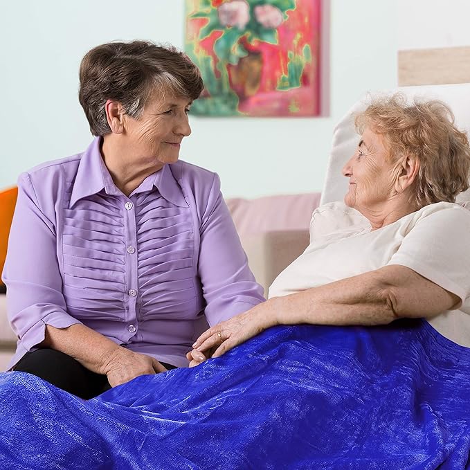 - LUXURY PLUSH SUPER SOFT BLANKET - The best get well gift sets include a cozy blanket like this one. Deep blue, 50 x 60 inches; it is the perfect size to cover up with in bed or on the sofa to get that much needed rest