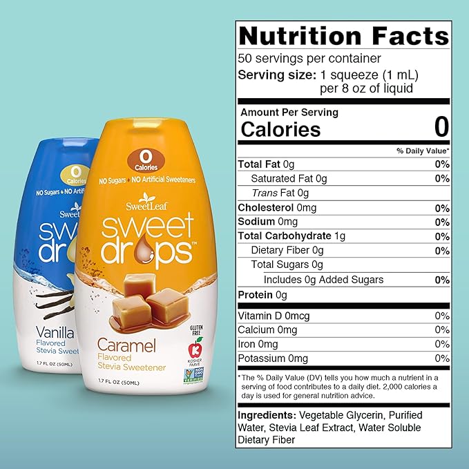 - ZERO CALORIE SWEETENER: SweetLeaf Sweet Drops deliver satisfying sweetness without added sugars. Enjoy the taste of vanilla or caramel with none of the calories