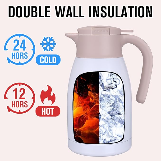 - QUALITY & DURABILITY: Constructed with BPA Free detachable lid and durable 304 food grade stainless steel interior and exterior, our vacuum thermal carafe is perfect used as a tea/coffee thermal carafe dispenser, milk carafe, creamer carafe, juice, wine, hot water pitcher.