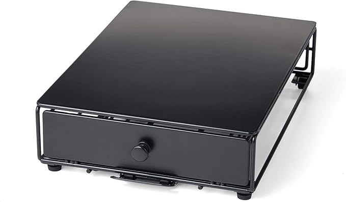- KITCHEN ORGANIZER: The functional and hassle-free style allows you to stand any coffee brewer on top of the drawer. With a chic black powder-coated finish, this holder will fit perfectly into your kitchen, dorm countertop, or office coffee bar.