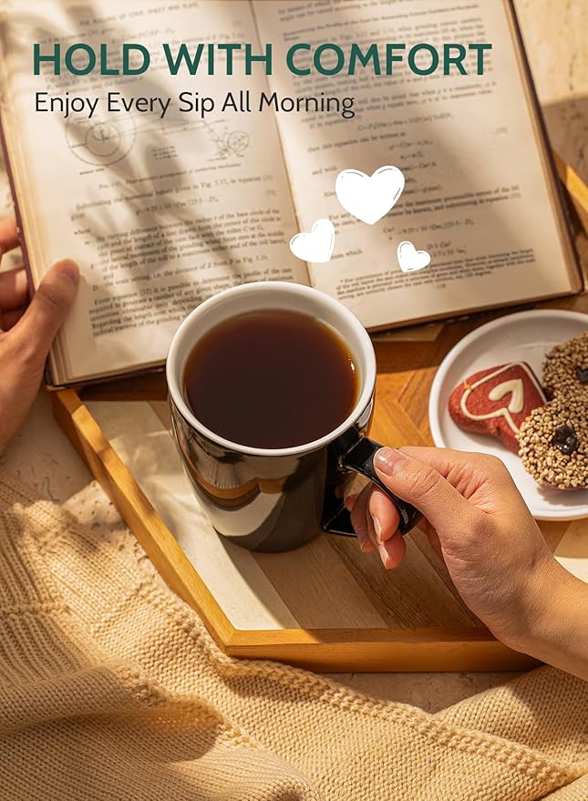 - ENJOY YOUR DRINK WITH EASE: Our coffee mugs redefine comfort with a spacious design and a large handle, ensuring a cozy grip. Savor the enhanced taste of your tea or coffee as the mug sits comfortably in your hands. Crafted with ergonomic precision, our mugs offer a stylish and secure grip, the wide mouth is perfect for indulging in hot lattes, complemented by a large handle that holds 16 ounces of goodness. Choose ease and style for every sip.