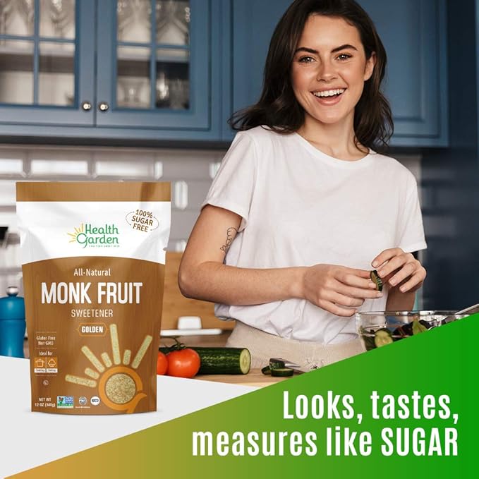 HEALTH GARDEN Monk Fruit Sweetener, Golden- Non GMO - Gluten Free - 1:1 Sugar Substitute - Kosher - Keto Friendly (12 oz)
