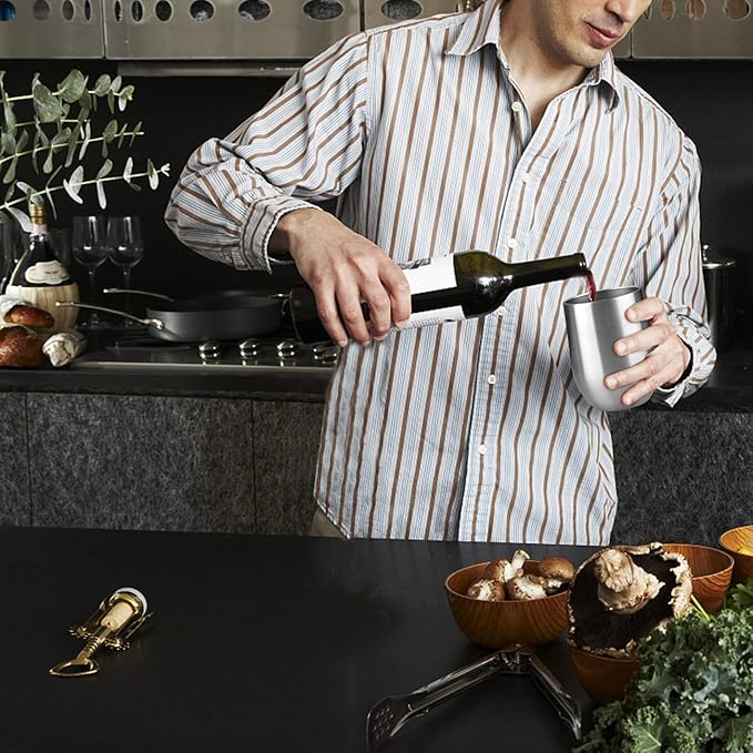 - [Advanced Insulation Technology:]Double wall vacuum insulated prefection in a stemless wine tumbler made from lifelong Stainless Steel! Set off on your refreshing picnic, hiking or camping adventures with your water, wine, or cocktail icy-cold for 9 hours or your coffee and tea scalding-hot for over 3 hours!