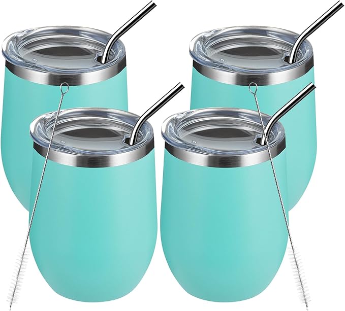 - [Package included]4*12oz wine tumbler,4*splash proof cover with hole, 4*unbreakable steel straw, 2*straw brush,and 1*beautiful gift box.If you are short of accessories, please contact us in time.