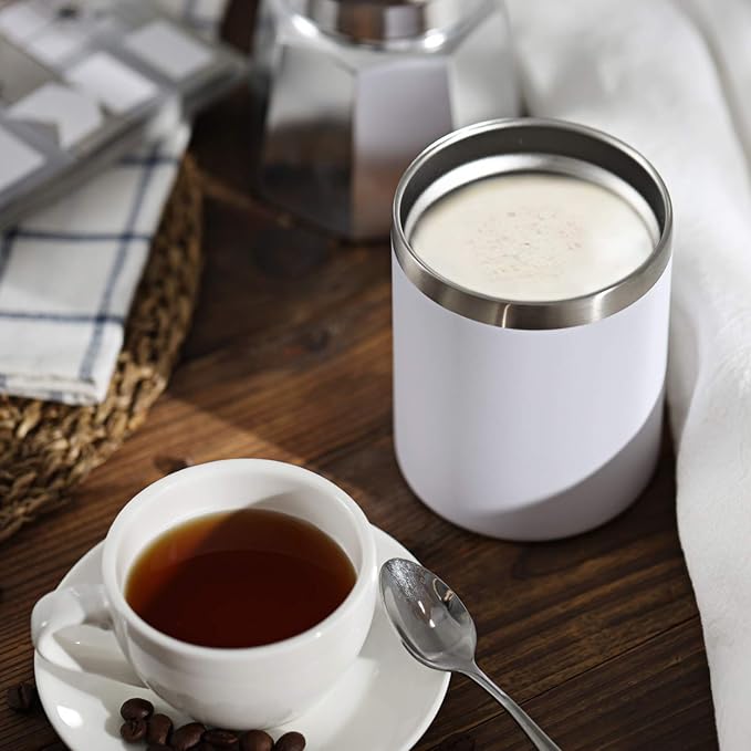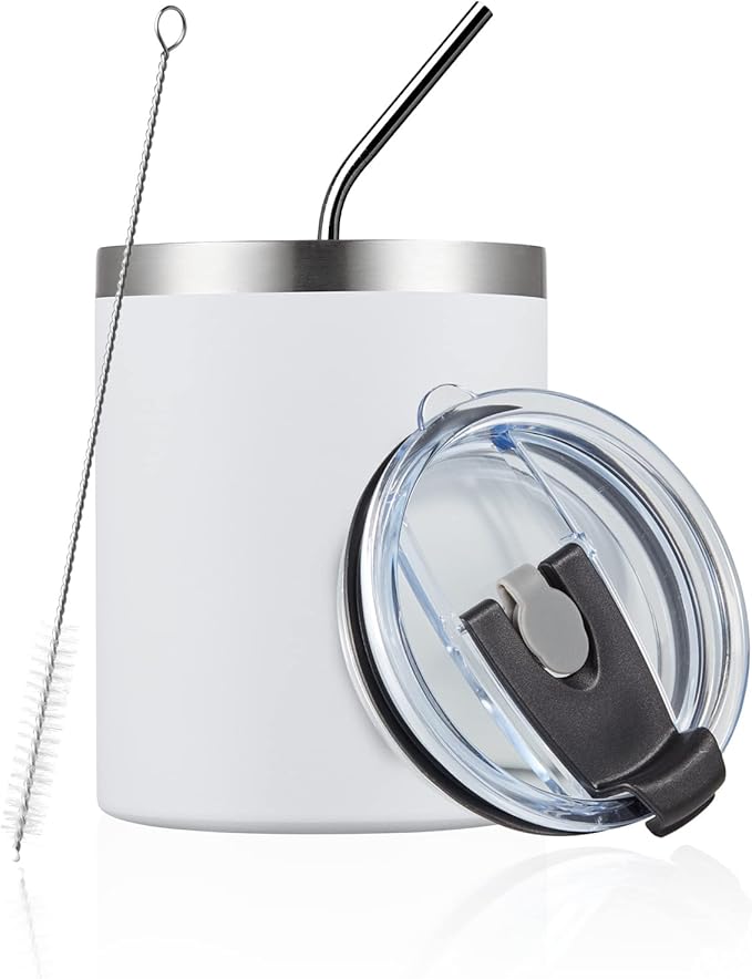 MEWAY 12 oz Lowball, Tumbler Stainless Steel Double Wall Vacuum Insulated Mug with Straw and Lid, Cleaning Brush ,Durable Powder Coated Insulated Coffee Cup for Cold & Hot Drinks (White, 1 Pack)