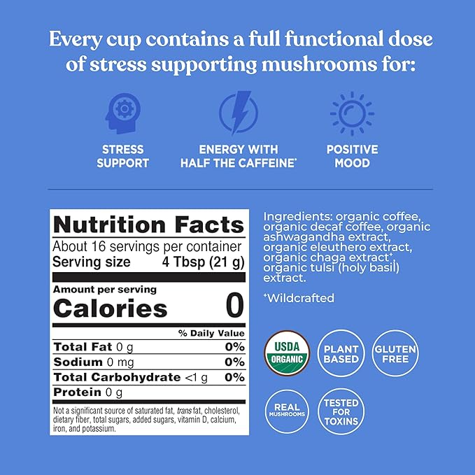- BREWS MEDIUM WITH NOTES OF NUTTY CARAMEL — Each brew creates a delicious cup of flavorful medium roast coffee. This coffee beverage is infused with four unbelievably calming adaptogens supplements, creating an effective stress-supporting cocktail.