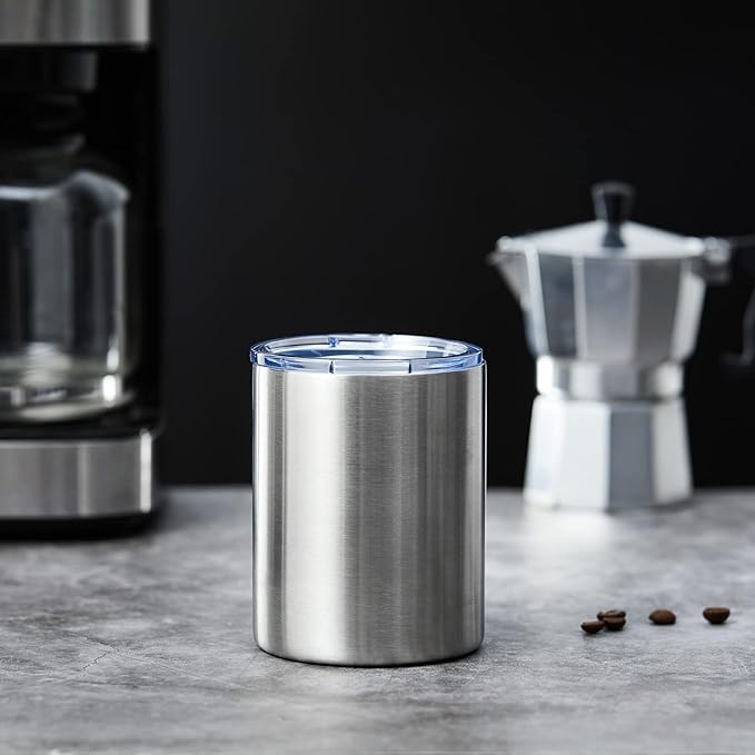 MEWAY 12 oz Lowball, Tumbler Stainless Steel Double Wall Vacuum Insulated Mug with Straw and Lid, Cleaning Brush ,Durable Powder Coated Insulated Coffee Cup for Cold & Hot Drinks (Silver,4 pack)