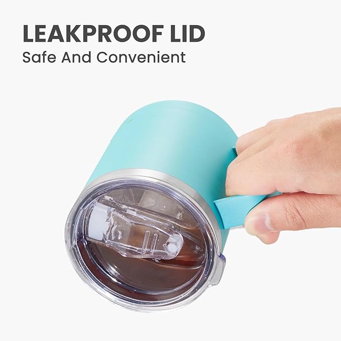 MEWAY 12oz Coffee Mug With Handle 8 Pack Bulk,Stainless Steel Insulated Travel Tumblers With Sliding Lid,Double Wall Vacuum Camping Cup for Hot & Cold Drinks Tea (Light Green,Set of 8)