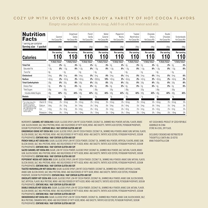 - COCOA VARIETY PACK - hot chocolate set includes 9 uniquely flavored cocoa mixes in gift packaging