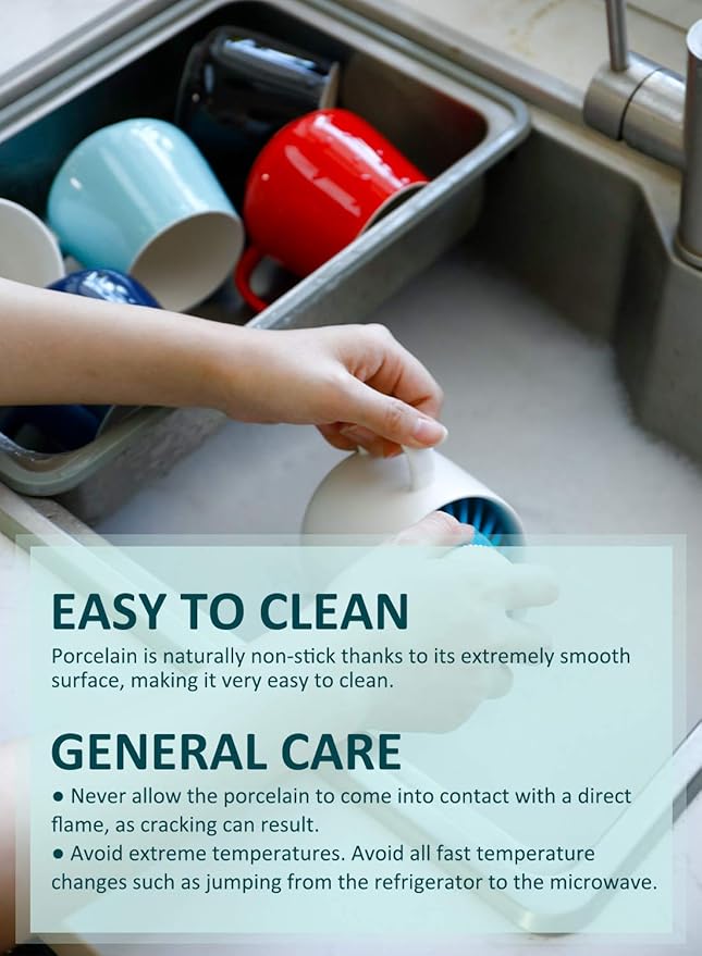 - CLEAN THEM IN NO TIME - Unlike other coffee cups that might be difficult to handwash, ours are easily washed with soap, water and a sponge, due to the smooth glossy porcelain finish and the accessible height of the mugs.