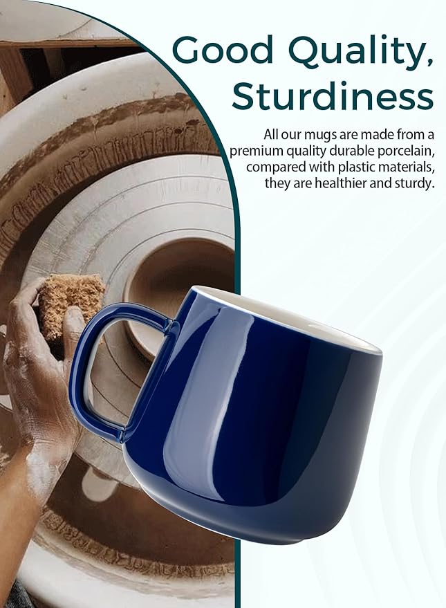 Teocera Ceramic Coffee Mug Set of 4-12 oz Coffee Mugs with Large Handles for Hot or Cold Drinks Like Latte, Cocoa, Tea or Juice - Smooth Ceramic, Dishwasher Safe, Navy