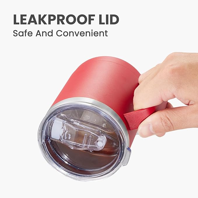 MEWAY 12oz Coffee Mug With Handle 2 Pack Bulk,Stainless Steel Insulated Travel Tumblers With Sliding Lid,Double Wall Vacuum Camping Cup for Hot & Cold Drinks Tea (Red,Set of 2)