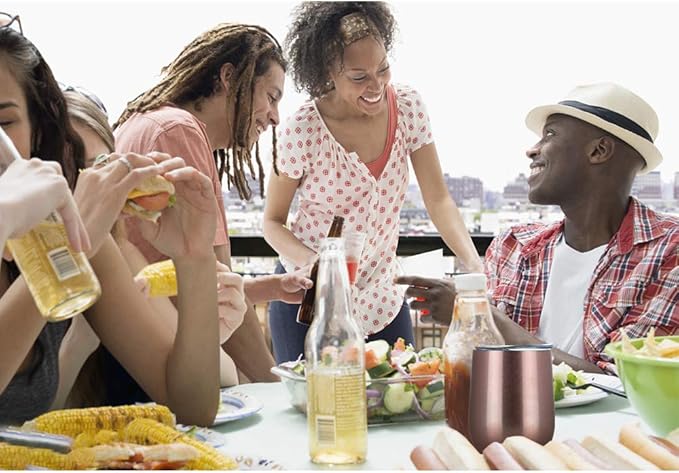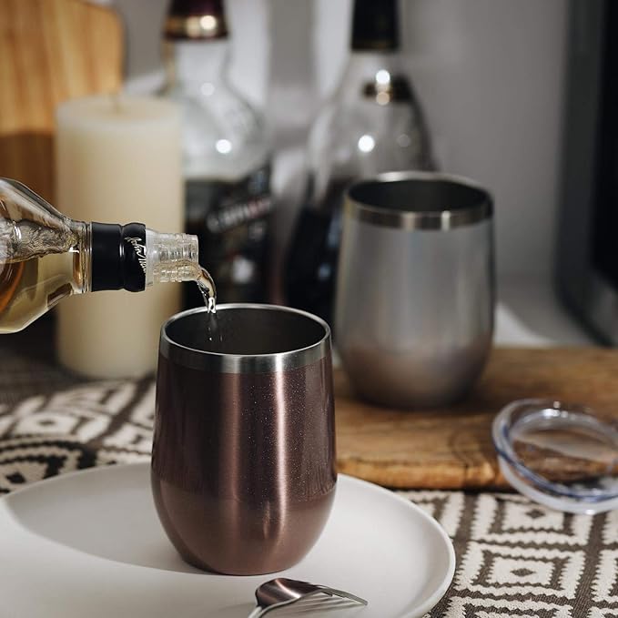 - [Advanced Insulation Technology:]Double wall vacuum insulated prefection in a stemless wine tumbler made from lifelong Stainless Steel! Set off on your refreshing picnic, hiking or camping adventures with your water, wine, or cocktail icy-cold for 10 hours or your coffee and tea scalding-hot for over 8 hours