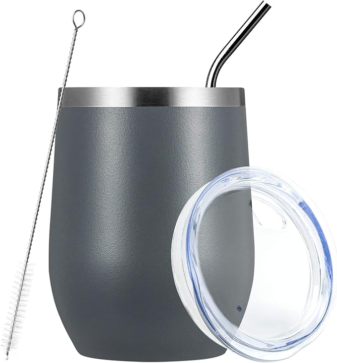 - [Package included:]1*12oz wine tumbler,1*splash proof cover with hole, 1*unbreakable steel straw, 1*straw brush,and 1*beautiful package box.If you are short of accessories, please let us know