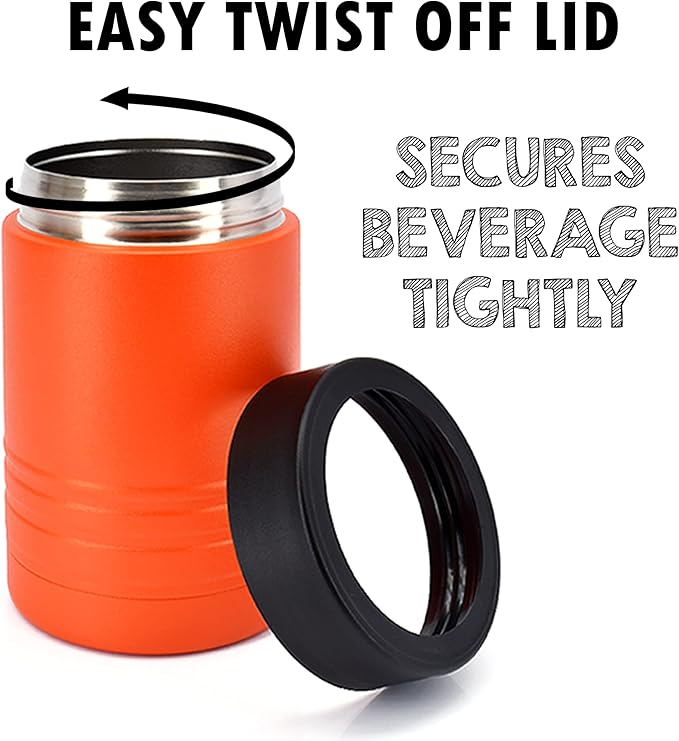 Clear Water Home Goods - 12 oz Stainless Steel Double Wall Vacuum Insulated Can or Bottle Beverage Cooler - Powder Coated Orange - 6 Pack