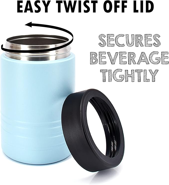 Clear Water Home Goods - 12 oz Stainless Steel Double Wall Vacuum Insulated Can or Bottle Beverage Cooler - Powder Coated Light Blue - 6 Pack