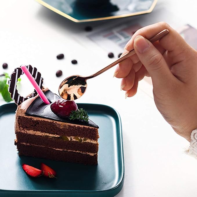 Espresso Spoons Set of 8 Matte Rose Gold Frosted Handle Stainless Steel Dessert Spoons for Espresso Tea Coffee Ice Cream Sugar Dessert Cake 5.3 Inch