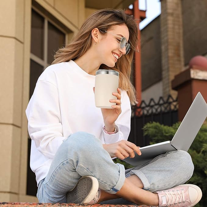 VEGOND Stainless Steel 12 oz Tumblers bulk Vacuum Insulated Double Wall Travel Tumbler with Lid and Straw Reusable Tumbler, Beige 6 pack