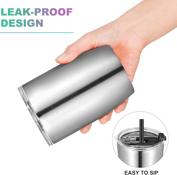 - Stainless Steel Tumblers with Lids and Straws: This 12 oz kids tumbler is made of 304 18/8 stainless steel including lid and straw. No metallic taste, Hand wash recommended