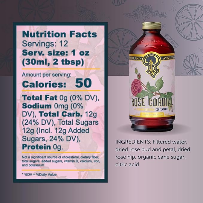 - Elevated Floral Elixirs: Immerse yourself in the fragrant world of Rose Cordial Syrup, meticulously crafted with whole dried rose blossoms and petals, capturing the flower's essence in every sip.