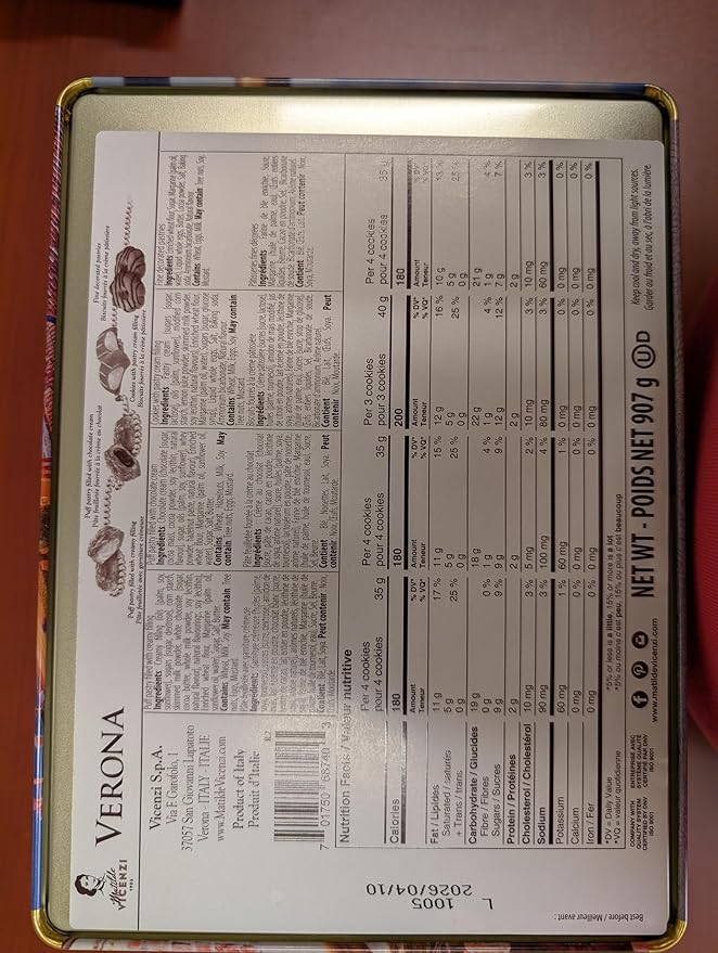 - Matilde Vicenzi Verona Gift Tin - A delicious selection of two varieties of rich shortbread cookies and two butery puff pastry cookies, packaged in a 32 oz gift tin decorated with scenic views of Verona. Made in Italy, Kosher Dairy and perfect for Christmas, Hanukkah, New Year or any gifting occasion.