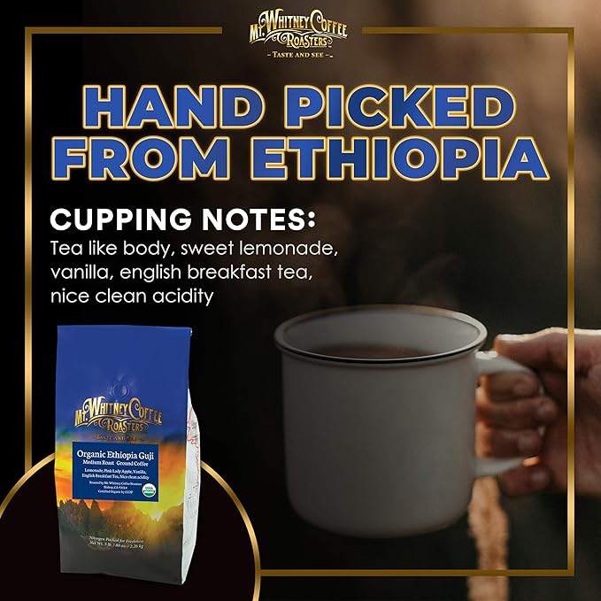 - SINGLE ORIGIN FOR SUPERIOR TASTE & QUALITY - Mt. Whitney’s Organic Ethiopia Guji Coffee is a single-origin coffee, sourced from a single country and single crop. Single-origin coffee accentuates certain flavor attributes specific to a region, and are of superior taste and quality.