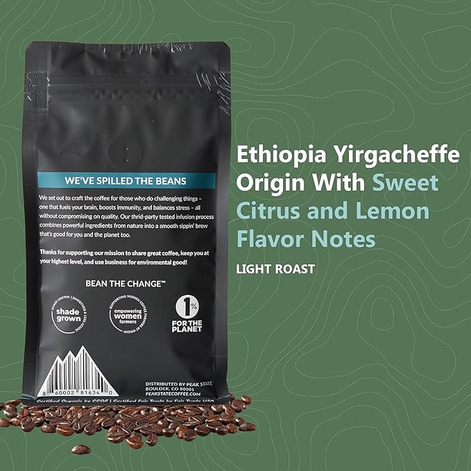 - EVERYDAY HEALTH RITUAL: Peak State is botanically infused with organic ingredients for daily wellness in your life. Adaptogenic mushrooms offer a less jittery coffee experience that supports immunity, cognition, and help to de-stress.