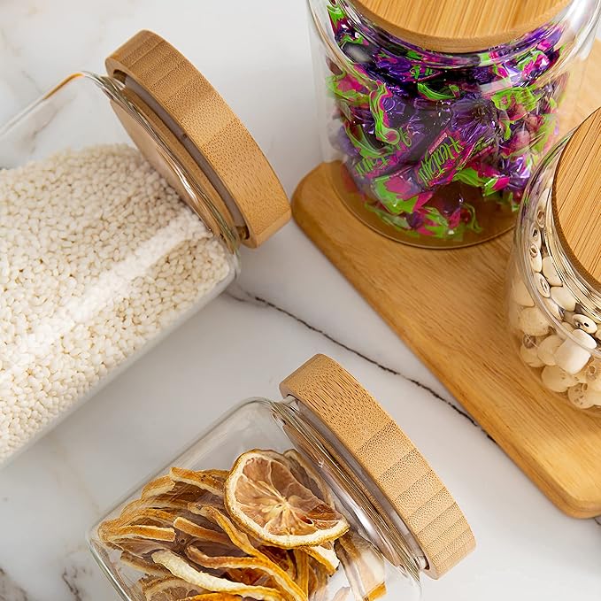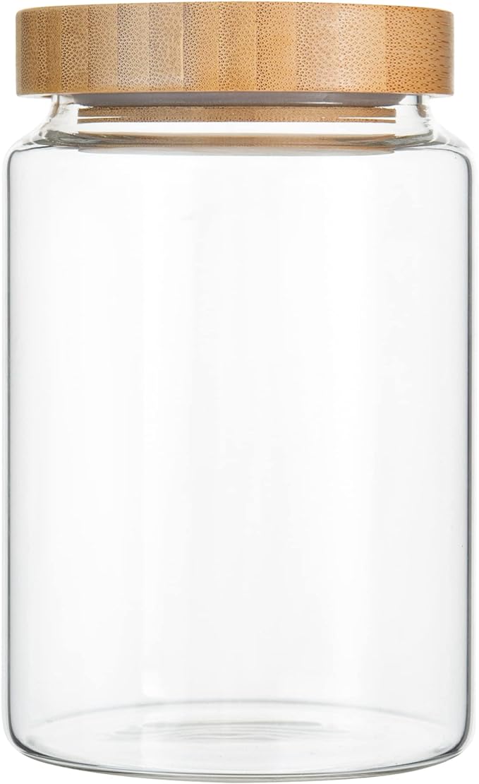 - PREMIUM MATERIAL -- This MOLADRI clear glass jar is made of high-grade borosilicate glass, thick enhanced wall, capable of withstanding thermal shock, scratch, and break resistant. The air tight flat lid is made from natural bamboo and create you a healthy life.