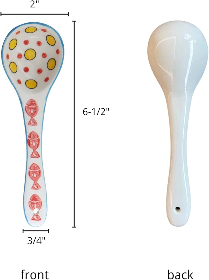 - [Colorful and Useful] Ceramic spoons patterns are pretty and whimsical, they can brighten up the kitchen table and help set the atmosphere for your meals. Ceramic spoons are cheerful and add a wonderful pop of color to your table! Spoon sets are best for broths, soups, or pho than regular spoons. It can work as Ramen or cereal spoons, but also would make cute spoons for serving dips or other appetizers.