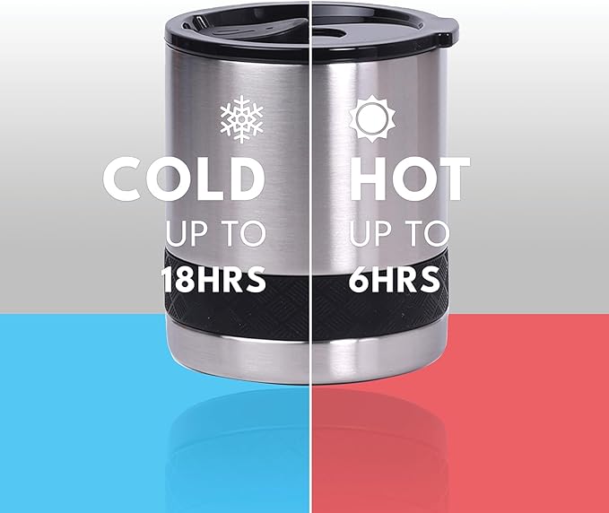 Elemental Recess Lowball Tumbler, 10oz Triple Wall Stainless Steel Cup with Non-Shattered Tritan Lid, Insulated Whiskey Glass, Insulated Coffee Tumbler Mug for Hot & Cold Drinks - Brushed Steel