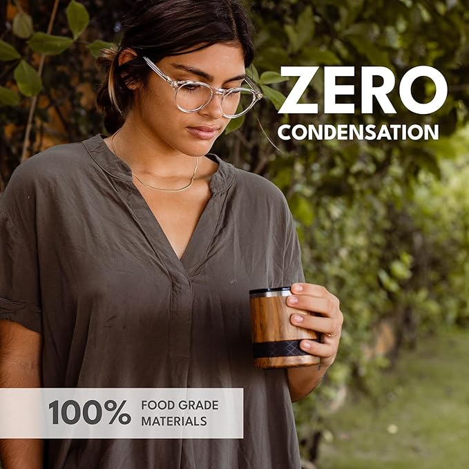 Elemental Recess Lowball Tumbler, 10oz Triple Wall Stainless Steel Cup with Non-Shattered Tritan Lid, Insulated Whiskey Glass, Insulated Coffee Tumbler Mug for Hot & Cold Drinks - Teak Wood