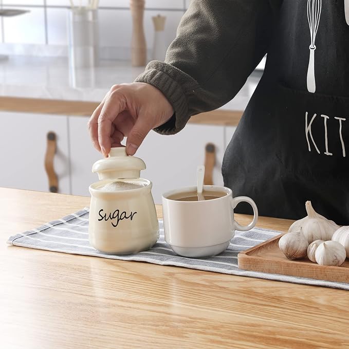 ONTUBE Ceramic Sugar Bowl with Lid and Spoon 12oz (beige)