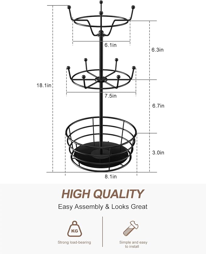 - 🥂【Multifunctional cup holder】Mug Holder Tree Stand-top fixed coffee tray, the cup holder adds swivel function, and the bottom has a storage basket for convenient storage of your favorite coffee pods or creamer. Perfectly placed on a kitchen island, this piece is perfect for your next dessert buffet for entertaining.