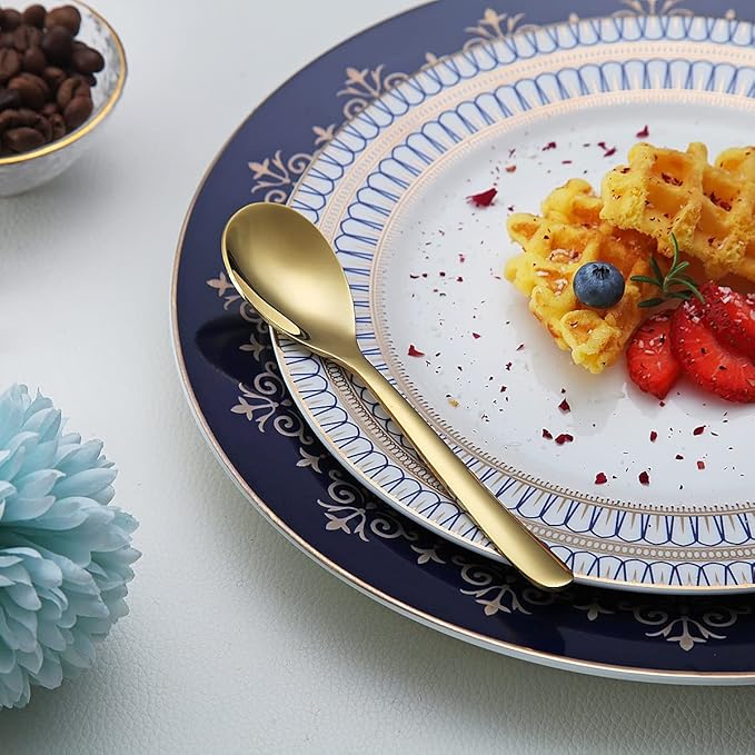- 【Luxury and High Quality Finish】: These gold Small Spoons are polish with mirror finish and plating with titanium gold. Looks luxury and beautiful. The gold titanium plating would protect the surface of silverware from scrath. Food grade material healthy for daily use.