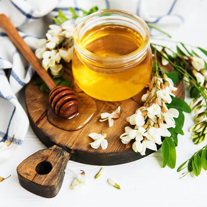 - TASTE: Acacia honey is lighter in color than other types of honey. It is sourced from a specific type of plant in Europe, which gives the final product a sweet and slightly floral taste.