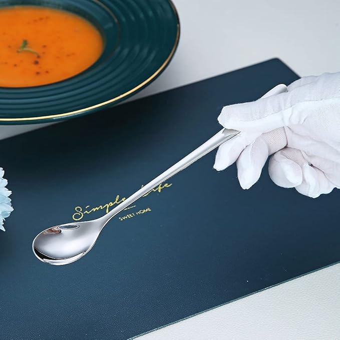 - 【Luxury and High Quality Finish】: Luxury and High Quality finish: These great Long Handle Spoon are polish with mirror finish. Looks luxury and beautiful. Food grade material healthy for daily use.