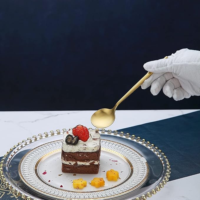 - 【Luxury and High Quality Finish】: These matt gold teaspoons are polish with mirror finish and plating with titanium gold. Looks luxury and beautiful. The gold titanium plating would protect the surface of silverware from scrath. Food grade material healthy for daily use.