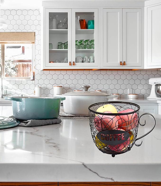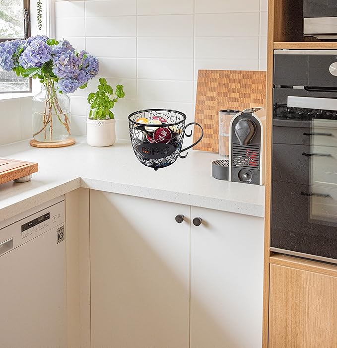 - ▶ Multi-Purpose coffee Pod Basket - This k cup basket can also storage creamers, sweeteners, tea, fruit, snacks, kitchen utensils, or even mails. It's also an excellent gift for someone who loves coffee and uses k-cups.