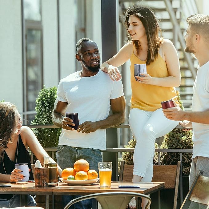 - [Advanced Insulation Technology:]Double wall vacuum insulated prefection in a stemless wine tumbler made from lifelong Stainless Steel! Set off on your refreshing picnic, hiking or camping adventures with your water, wine, or cocktail icy-cold for 10 hours or your coffee and tea scalding-hot for over 8 hours