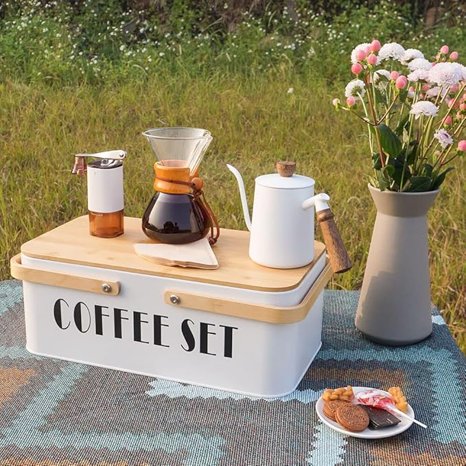 - Private coffee bar:Pour over coffee maker set with a metal box is portable,you can carry it everywhere as a private coffe bar,wonderful day with wonderful mood-Relax yourself.