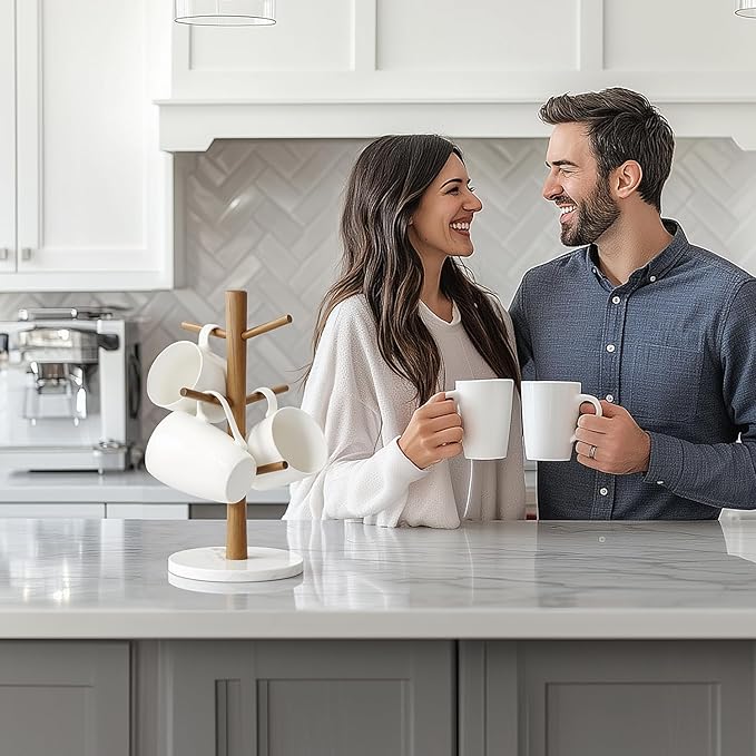 - Natural Aesthetic Appeal: With its white marble base and warm wood branches, this mug tree for counter large mugs 6 adds a fresh and calming vibe to your kitchen or coffee station