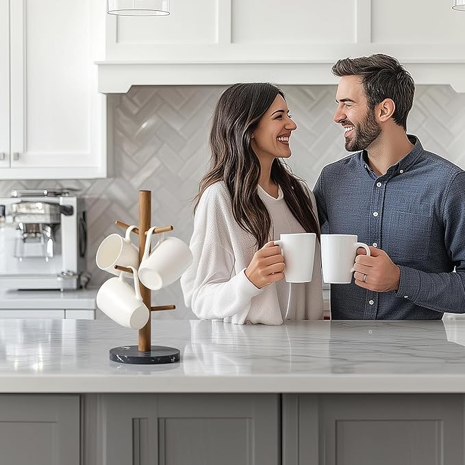 - Natural Aesthetic Appeal: With its white marble base and warm wood branches, this mug tree for counter large mugs 6 adds a fresh and calming vibe to your kitchen or coffee station