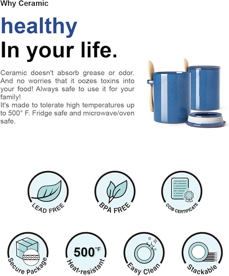 - With A Useful Spoon - Featuring the simple but exquisite design, the sugar container is also a pretty decoration to match well with the design style of the kitchen or table. Our ceramic jar comes with a spoon, allowing you to better take out the amount of food. Enjoy your delicious coffee or milk with a spoon of sugar for breakfast and then have a nice day.